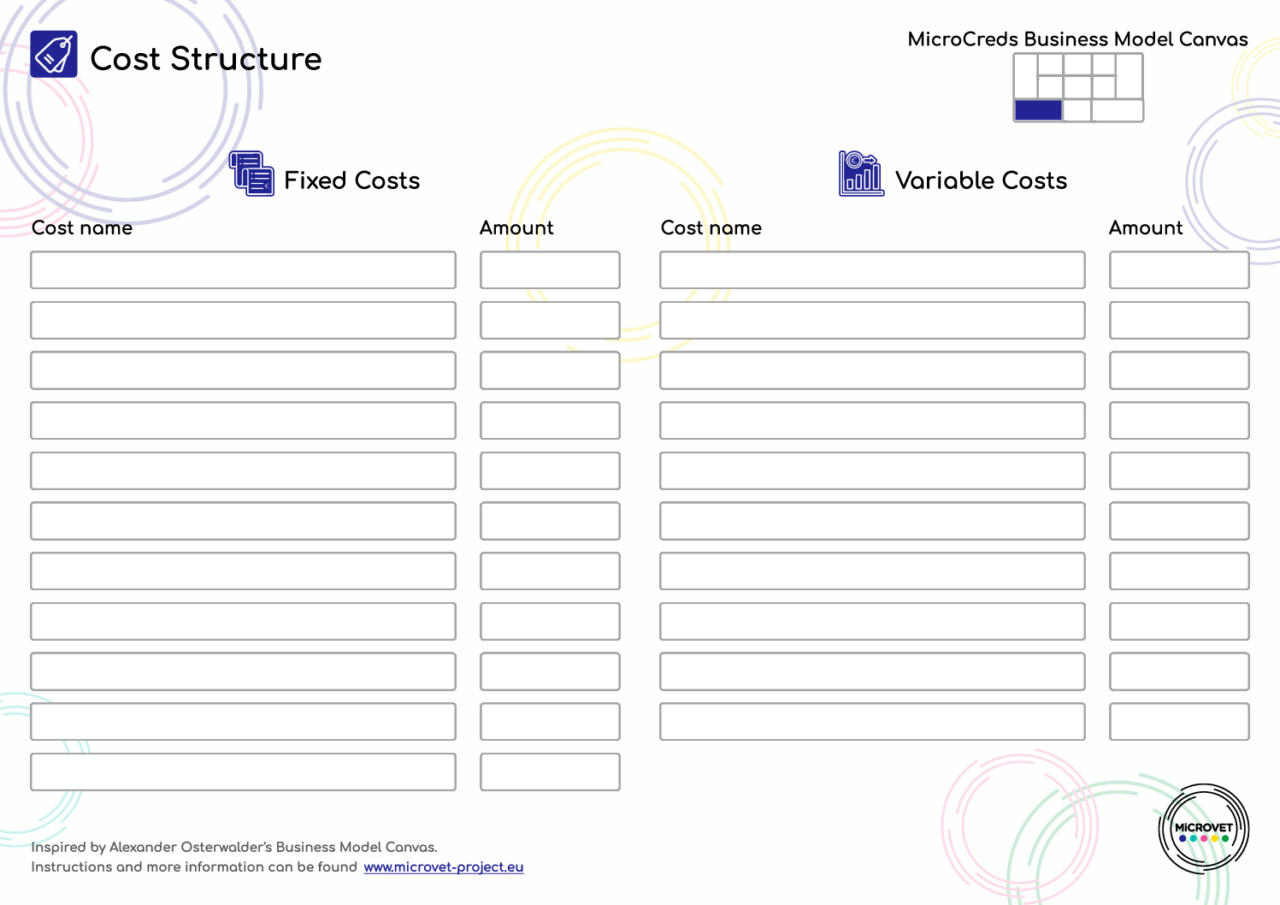 The Cost Structure worksheet is designed to help you clearly identify and organise the costs involved in running your micro credential programme. This is essential for budgeting, setting fees, and ensuring financial sustainability.