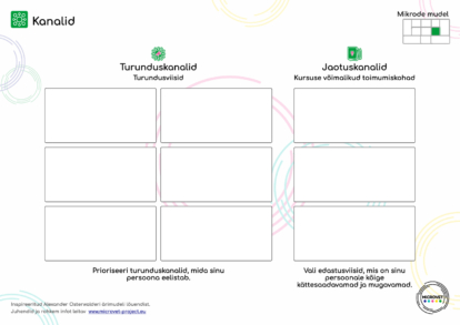 Kanalite tööleht aitab sul määratleda ja korrastada kõige tõhusamad kanalid, mille kaudu jõuda potentsiaalsete õppijateni ning edastada kursuse sisu. See kahetasandiline lähenemine toetab strateegilist mõtlemist nii õppijate kaasamisel kui ka kvaliteetse õpikogemuse pakkumisel. Kasuta seda töölehte koos õppija persoona ja väärtuspakkumise töölehtedega, et valida kanalid, mis vastavad sinu sihtgrupi vajadustele, eelistustele ja eesmärkidele.