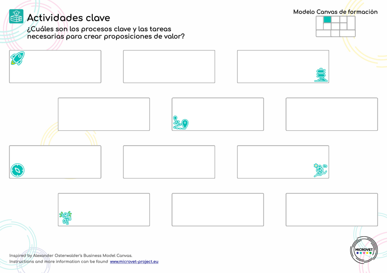 Empiece por definir la primera actividad clave necesaria para el desarrollo del curso. Esto puede incluir tareas como «Estudio de mercado» o «Identificar las necesidades del alumno». Utilice el espacio proporcionado en el cuadro para describir la actividad en detalle, incluyendo los objetivos y los resultados esperados. Considere la posibilidad de incluir quién es el responsable de cada tarea y los recursos o aportaciones necesarios para completarla.