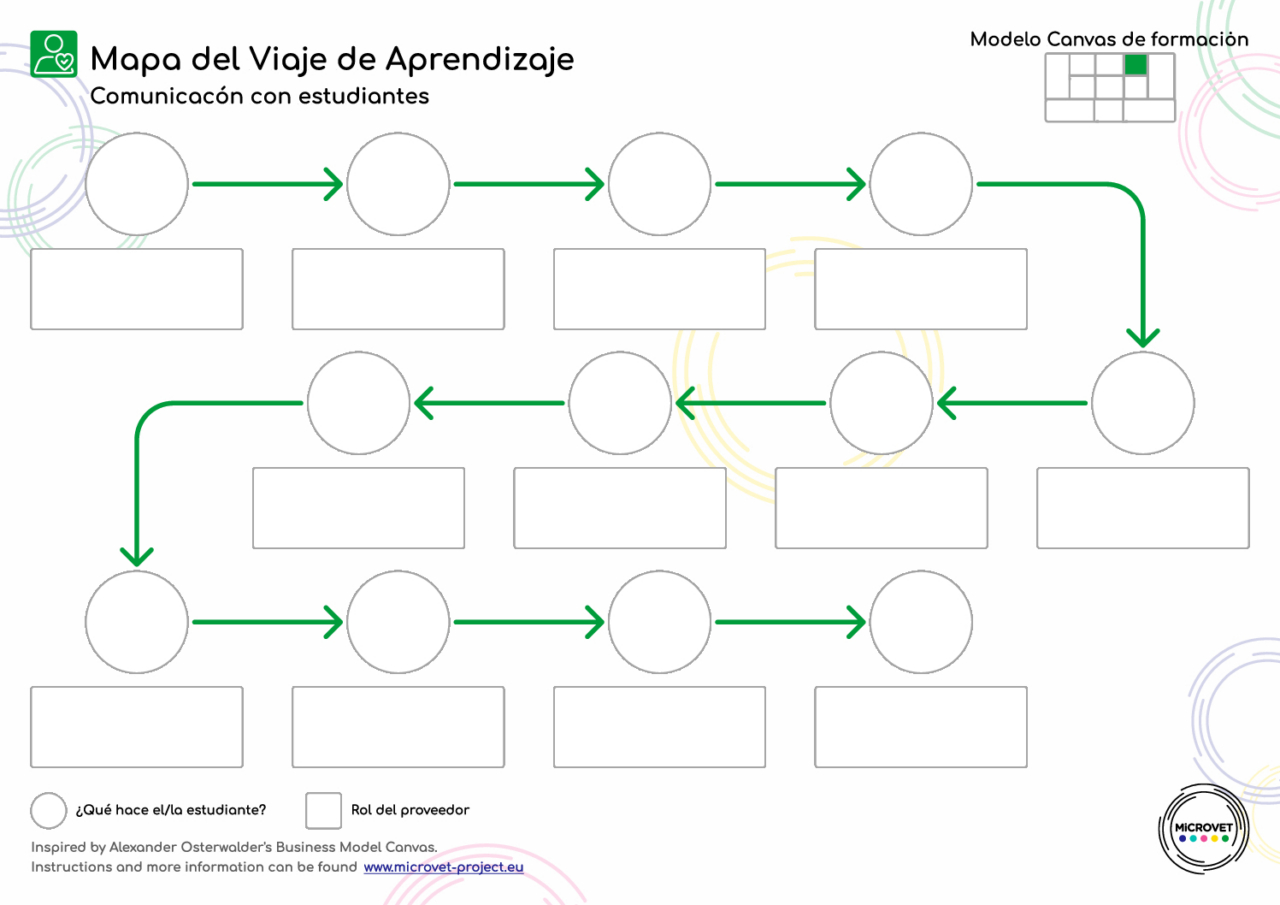 - Adáptese a las necesidades de los alumnos: utilice la información de la hoja de trabajo sobre el perfil del alumno (Learner persona) y la hoja de trabajo sobre la propuesta de valor para asegurarse de que cada paso respalda las necesidades y expectativas de los alumnos. Piense desde la perspectiva de los alumnos: ¿qué necesitarán en cada etapa?