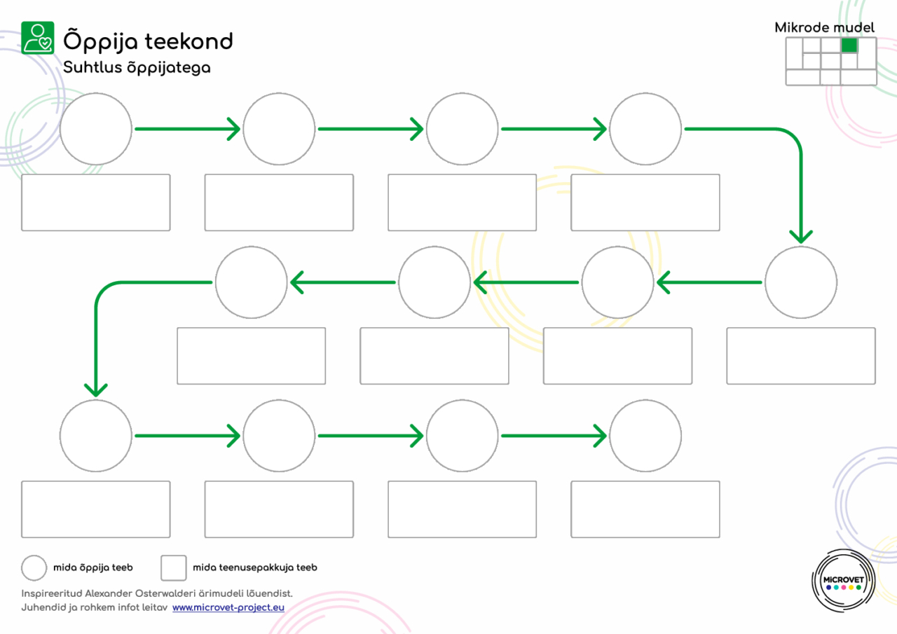 – Lähtumine õppija vajadustest: Kasuta õppija persoona ja väärtuspakkumise töölehtede infot, et iga samm vastaks õppija ootustele ja vajadustele. Mõtle alati õppija vaatenurgast – mida ta igas etapis vajab?